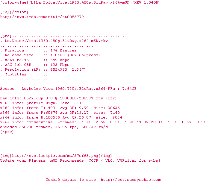 Decalage Resynchro sous titres de la version vHD pour celle ci qui est en 24,0003fps (et non 23.976fps)