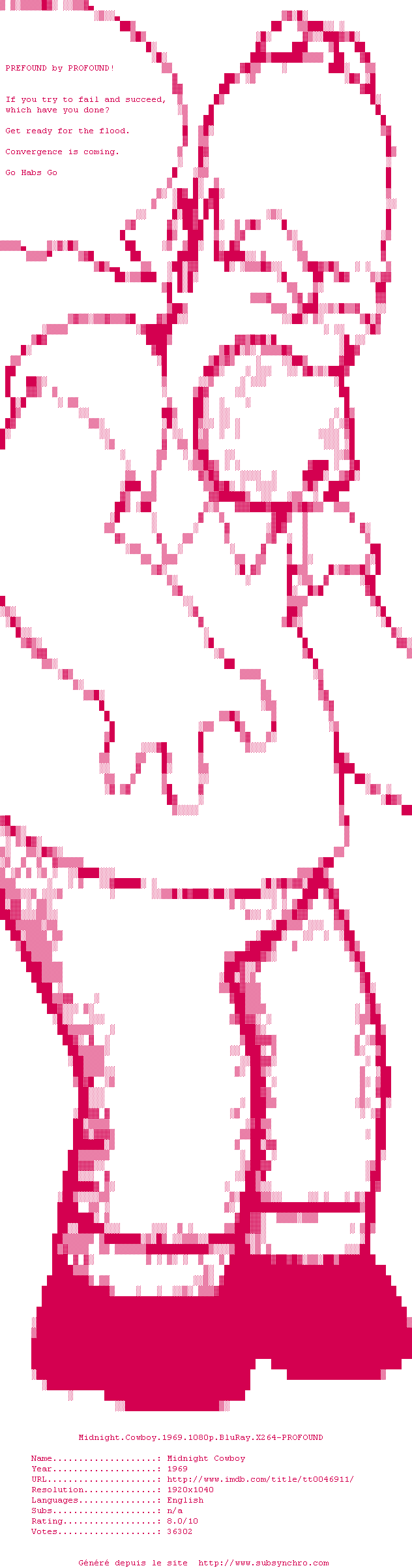 Y avez-vous pense ? Nous proposons déjà 7 sous-titres pour le film Macadam Cowboy. Avez-vous essaye de voir si ces sous-titres etaient compatibles avec cette release ? On vous laisse le soin de tester cela pour nous et de contribuer au site en postant le sous-titre en cas de compatiblite constatee !