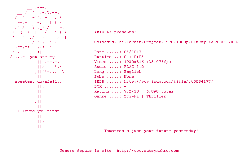 Commentez le fichier Colossus.The.Forbin.Project.1970.1080p.BluRay.X264-AMIABLE-fr.srt