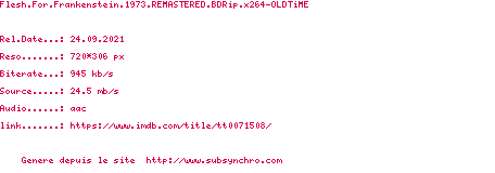Y avez-vous pense ? Nous proposons déjà 1 sous-titre pour le film Chair pour Frankenstein. Avez-vous essaye de voir si ces sous-titres etaient compatibles avec cette release ? On vous laisse le soin de tester cela pour nous et de contribuer au site en postant le sous-titre en cas de compatiblite constatee !