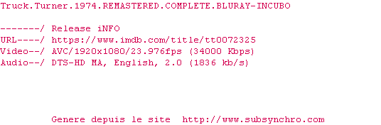 Voir le nfo de la release Truck.Turner.1974.REMASTERED.COMPLETE.BLURAY-INCUBO