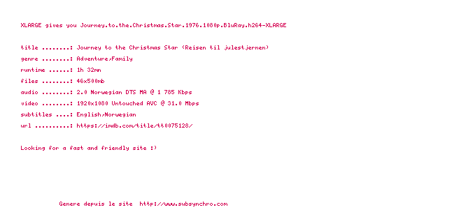 Telechargez le RSS « Fichier de la release Journey.To.The.Christmas.Star.1976.1080p.BluRay.H264-XLARGE »