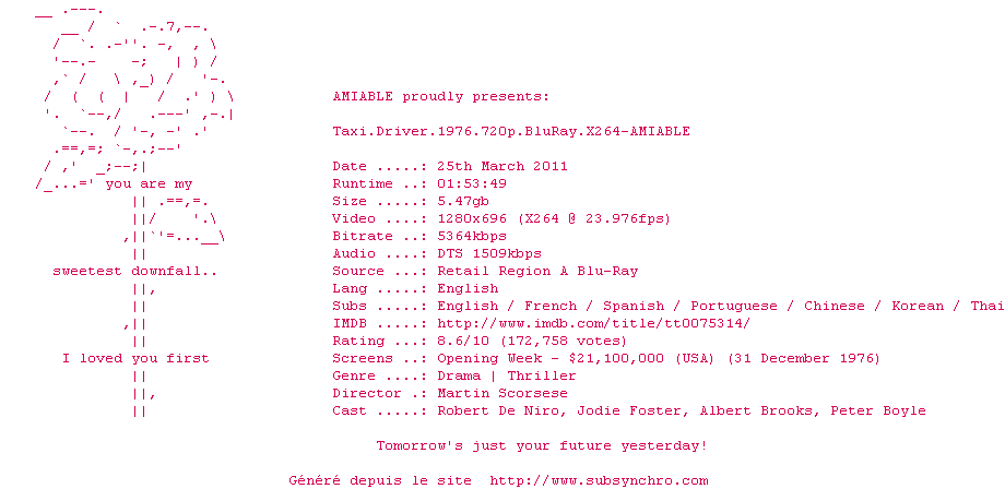 Commentez le fichier Taxi.Driver.1976.720p.BluRay.X264-AMIABLE.srt