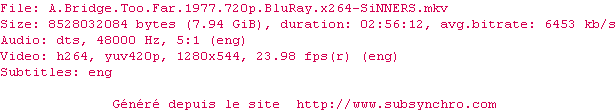 abridgetoofar1977720pblurayx264-sinners.srt Ce fichier a été testé et validé par Ultimhate Ajouté par Ultimhate Ajoute le 31-05-2014 21:20:57 Format : SRT Italique : Non Taille : 0.00Ko Telechargement : 71 Testé par le membre Ajouter cette release à ma collection en cas de telechargement des sous-titres 0 0 0 Telecharger le ZiP contenant NFO, Affiche, Sous-titre (*.srt) Commentez le fichier abridgetoofar1977720pblurayx264-sinners.srt Commentez le fichier abridgetoofar1977720pblurayx264-sinners.srt Commentez ce fichier Le fichier 138-1401564057.srt n'existe pas ! Telechargez le RSS « Fichier de la release A.Bridge.Too.Far.1977.720p.BluRay.x264-SiNNERS » Retour au film « Un pont trop loin »