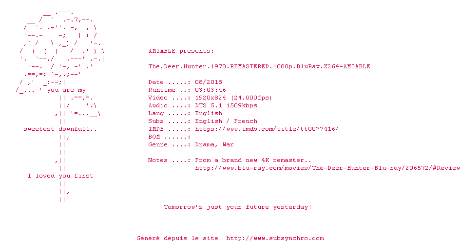 Commentez le fichier The.Deer.Hunter.1978.2160p.UHD.BluRay.X265-IAMABLE.srt