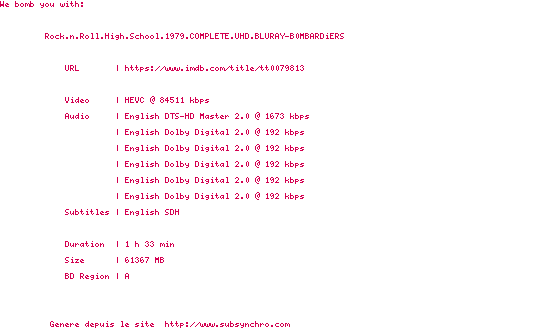 Y avez-vous pense ? Nous proposons déjà 1 sous-titre pour le film Le Lycée des cancres. Avez-vous essaye de voir si ces sous-titres etaient compatibles avec cette release ? On vous laisse le soin de tester cela pour nous et de contribuer au site en postant le sous-titre en cas de compatiblite constatee !