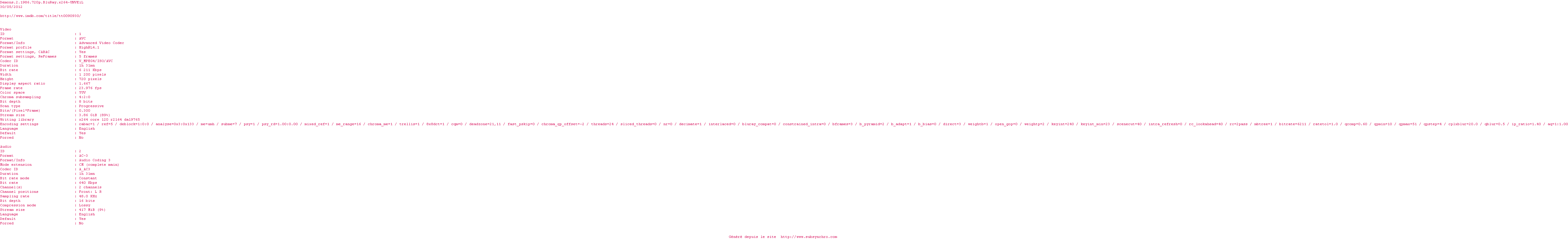 Y avez-vous pense ? Nous proposons déjà 1 sous-titre pour le film Demons 2. Avez-vous essaye de voir si ces sous-titres etaient compatibles avec cette release ? On vous laisse le soin de tester cela pour nous et de contribuer au site en postant le sous-titre en cas de compatiblite constatee !