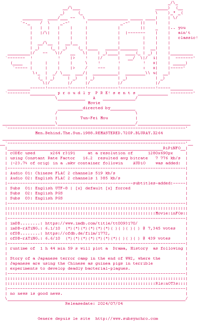 Telechargez le RSS « Fichier de la release Men.Behind.The.Sun.1988.REMASTERED.720P.BLURAY.x264-WATCHABLE »