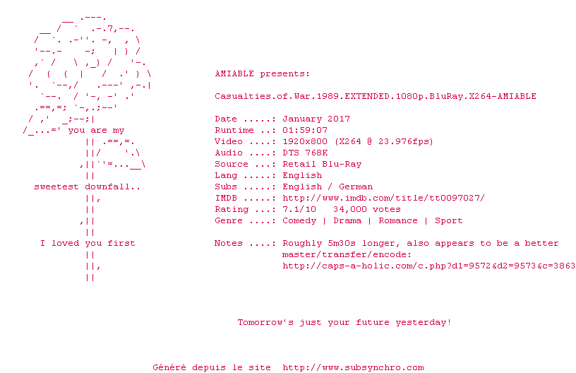 Commentez le fichier Casualties.of.War.1989.EXTENDED.1080p.BluRay.X264-AMIABLE.srt