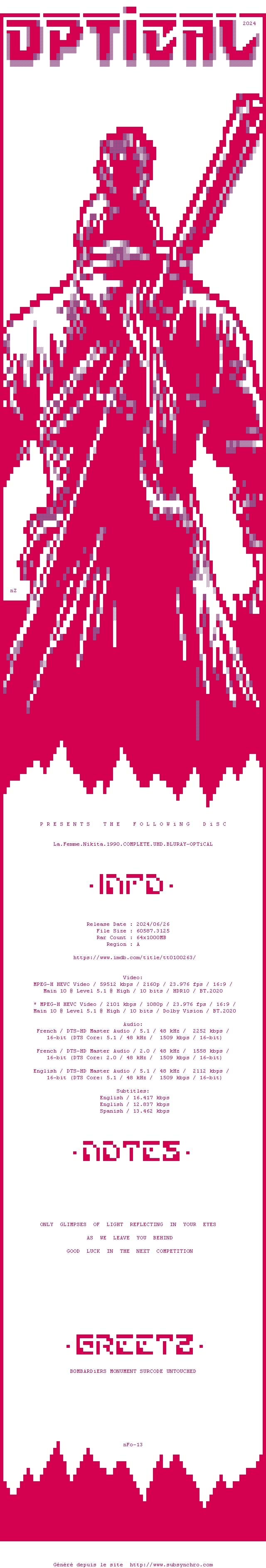 La release La.Femme.Nikita.1990.COMPLETE.UHD.BLURAY-OPTiCAL est en 4K