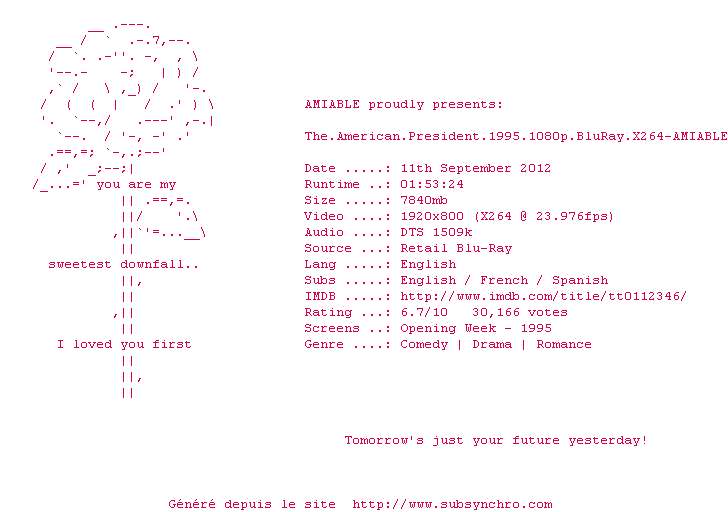 Commentez le fichier The.American.President.1995.1080p.BluRay.X264-AMIABLE.Fr.srt