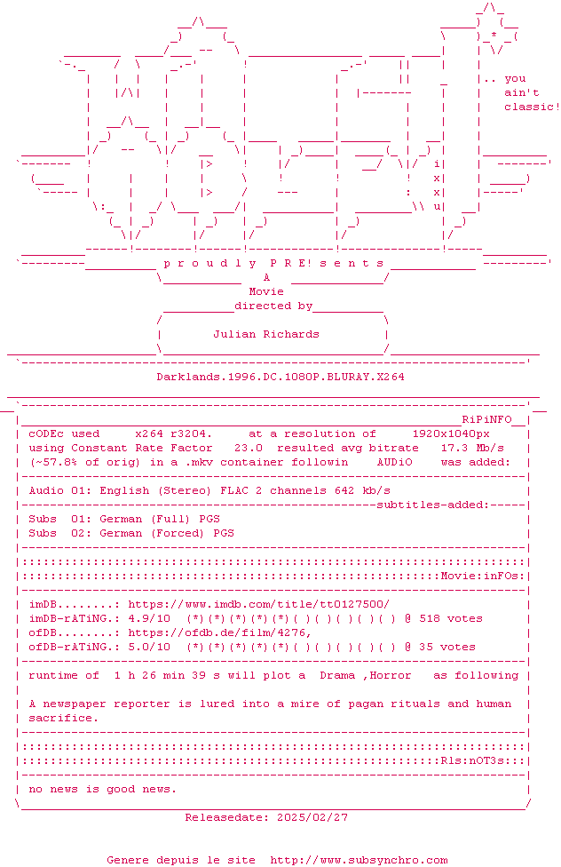 Telechargez le RSS « Fichier de la release Darklands.1996.DC.1080P.BLURAY.x264-WATCHABLE »