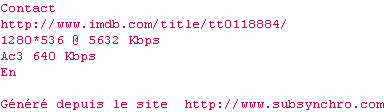 Contact.1997.1080p.Bluray.x264-HDCLASSiCS.srt Ajouté par Dzoolander Ajoute le 29-03-2021 18:25:35 Format : SRT Italique : Oui Taille : 0.00Ko Telechargement : 38 Ajouter cette release à ma collection en cas de telechargement des sous-titres 0 0 0 Telecharger le ZiP contenant NFO, Affiche, Sous-titre (*.srt) Commentez le fichier Contact.1997.1080p.Bluray.x264-HDCLASSiCS.srt Commentez le fichier Contact.1997.1080p.Bluray.x264-HDCLASSiCS.srt Commentez ce fichier Le fichier 12150-1617035135.srt n'existe pas ! Telechargez le RSS « Fichier de la release Contact.1997.720p.BluRay.x264-HDCLASSiCS » Retour au film « Contact »