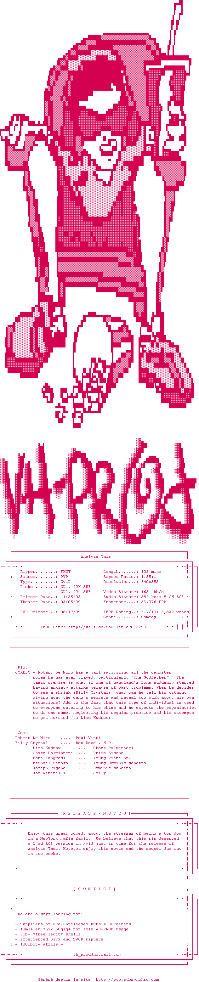 Analyze.This.INTERNAL.1999.DVDRip.XviD-VH-PROD.zip Ajouté par XeiS Ajoute le 16-02-2010 11:40:15 Format : ZIP Italique : Non Taille : 0.00Ko Telechargement : 68 Le fichier 52-1266316815.zip n'existe pas ! Ajouter cette release à ma collection en cas de telechargement des sous-titres 0 0 0 Telecharger le ZiP contenant NFO, Affiche, Sous-titre (*.zip) Commentez le fichier Analyze.This.INTERNAL.1999.DVDRip.XviD-VH-PROD.zip Commentez le fichier Analyze.This.INTERNAL.1999.DVDRip.XviD-VH-PROD.zip Commentez ce fichier Le fichier 52-1266316815.zip n'existe pas ! Telechargez le RSS « Fichier de la release Analyze.This.INTERNAL.1999.DVDRip.XviD-VH-PROD » Retour a la release « Analyze.This.INTERNAL.1999.DVDRip.XviD-VH-PROD »