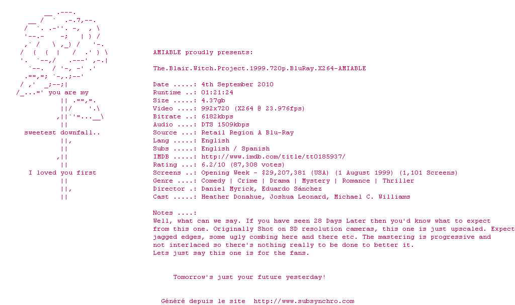 Synchro parfaite, pas de fautes d'orthographes ou de ponctuations à signalez, pas d'erreurs etc ... PARFAIT ! Merci beaucoup