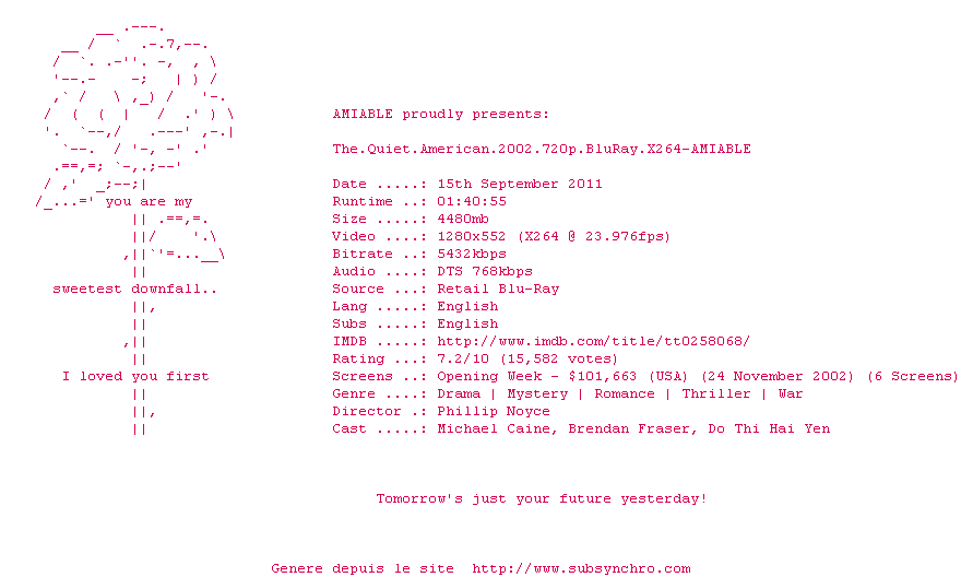 Commentez le fichier The.Quiet.American.2002.720p.BluRay.x264-AMIABLE.srt