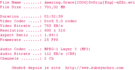 Amazing.Grace2006DvDripEng-aXXo.srt Ajouté par Ultimhate Ajoute le 20-07-2010 06:36:08 Format : SRT Italique : Non Taille : 0.00Ko Telechargement : 95 Ajouter cette release à ma collection en cas de telechargement des sous-titres 0 0 0 Telecharger le ZiP contenant NFO, Affiche, Sous-titre (*.srt) Commentez le fichier Amazing.Grace2006DvDripEng-aXXo.srt Commentez le fichier Amazing.Grace2006DvDripEng-aXXo.srt Commentez ce fichier Le fichier 138-1279600590.srt n'existe pas ! Telechargez le RSS « Fichier de la release Amazing.Grace.2006.DVDRip-aXXo » Retour au film « Amazing Grace : Le Chemin vers la liberté »