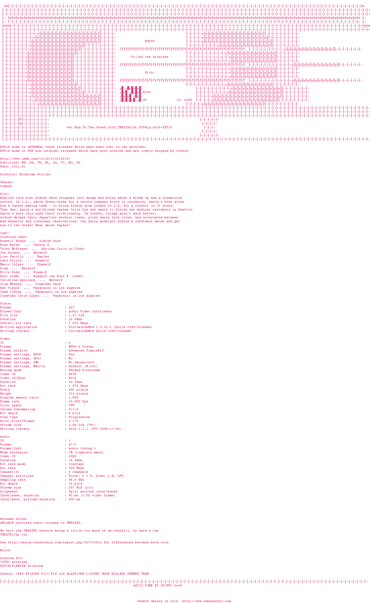 Y avez-vous pense ? Nous proposons déjà 10 sous-titres pour le film American Trip. Avez-vous essaye de voir si ces sous-titres etaient compatibles avec cette release ? On vous laisse le soin de tester cela pour nous et de contribuer au site en postant le sous-titre en cas de compatiblite constatee !