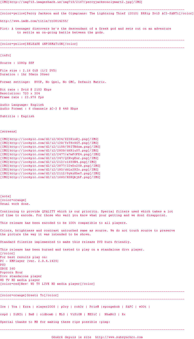 Sous-titres de films synchronises par release