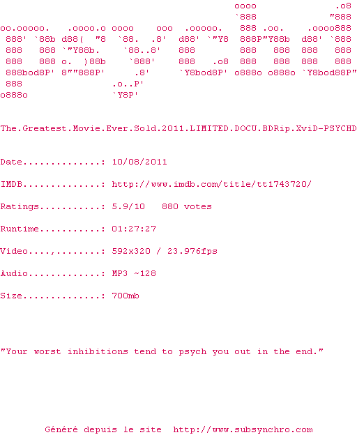 Commentez le fichier the.greatest.movie.ever.sold.2011.bdrip.xvid-psychd.srt