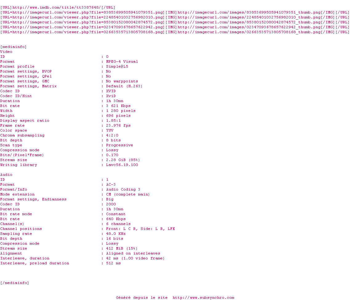 Y avez-vous pense ? Nous proposons déjà 9 sous-titres pour le film L'Étrange Cas Deborah Logan. Avez-vous essaye de voir si ces sous-titres etaient compatibles avec cette release ? On vous laisse le soin de tester cela pour nous et de contribuer au site en postant le sous-titre en cas de compatiblite constatee !