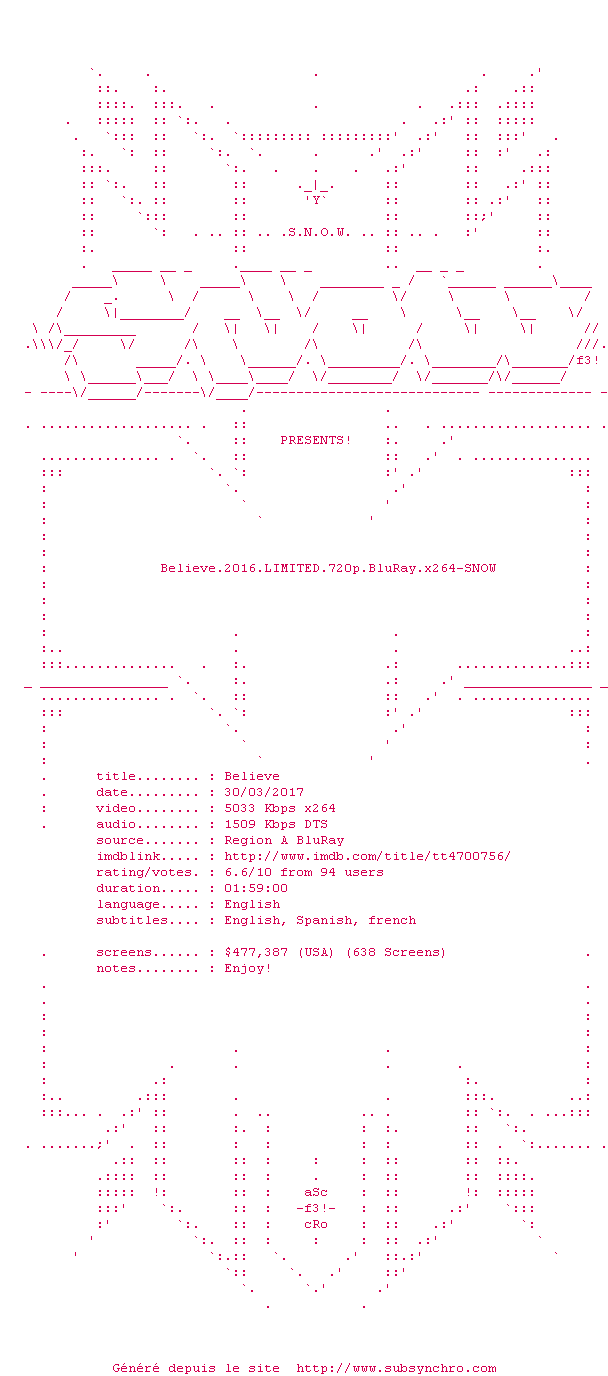Commentez le fichier Believe.2016.COMPLETE.BLURAY-BAKED.Fr.srt