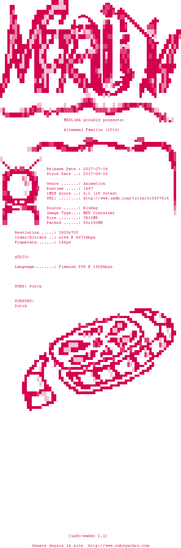 Y avez-vous pense ? Nous proposons déjà 1 sous-titre pour le film Allemaal Familie. Avez-vous essaye de voir si ces sous-titres etaient compatibles avec cette release ? On vous laisse le soin de tester cela pour nous et de contribuer au site en postant le sous-titre en cas de compatiblite constatee !