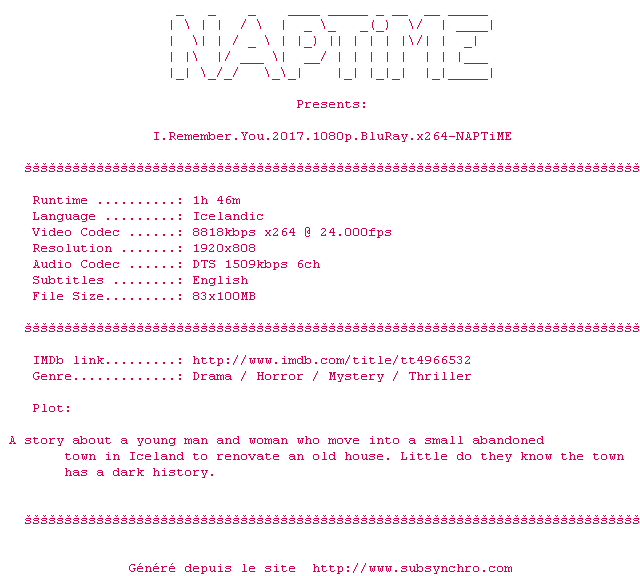 Commentez le fichier I.Remember.You.2017.1080p.BluRay.x264-NAPTiME.srt