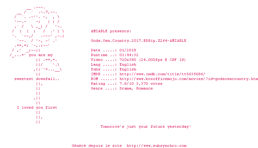 Y avez-vous pense ? Nous proposons déjà 4 sous-titres pour le film Seule la Terre. Avez-vous essaye de voir si ces sous-titres etaient compatibles avec cette release ? On vous laisse le soin de tester cela pour nous et de contribuer au site en postant le sous-titre en cas de compatiblite constatee !