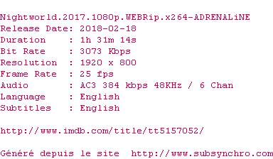 Telechargez le RSS « Fichier de la release Nightworld.2017.1080p.WEBRip.x264-ADRENALiNE »