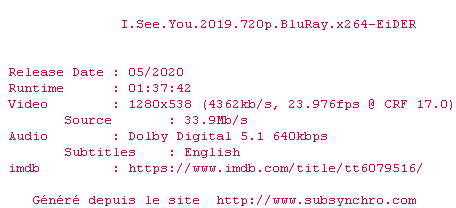 Commentez le fichier I.See.You.2019.720p.BluRay.x264-EiDER.srt