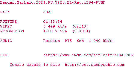 Telechargez le RSS « Fichier de la release Bender.Nachalo.2021.RU.720p.BluRay.x264-RUHD »