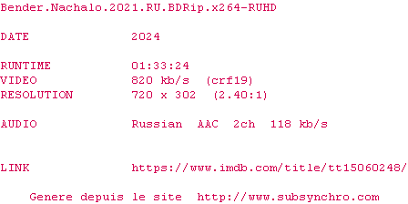 Telechargez le RSS « Fichier de la release Bender.Nachalo.2021.RU.BDRip.x264-RUHD »