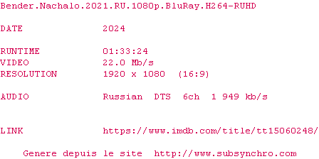 Telechargez le RSS « Fichier de la release Bender.Nachalo.2021.RU.1080p.BluRay.H264-RUHD »