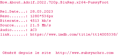 Telechargez le RSS « Fichier de la release How.About.Adolf.2022.720p.BluRay.x264-PussyFoot »