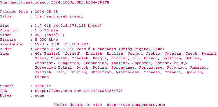 Telechargez le RSS « Fichier de la release The.Heartbreak.Agency.2024.1080p.WEB.H264-EDITH »