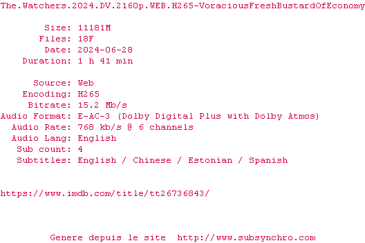 Y avez-vous pense ? Nous proposons déjà 2 sous-titres pour le film Les Guetteurs. Avez-vous essaye de voir si ces sous-titres etaient compatibles avec cette release ? On vous laisse le soin de tester cela pour nous et de contribuer au site en postant le sous-titre en cas de compatiblite constatee !