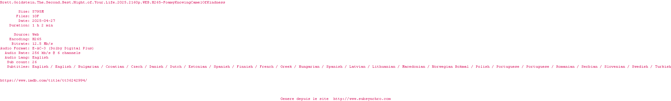 Voir le nfo de la release The.Snow.Must.Go.On.2025.1080p.WEB.H264-EDITH
