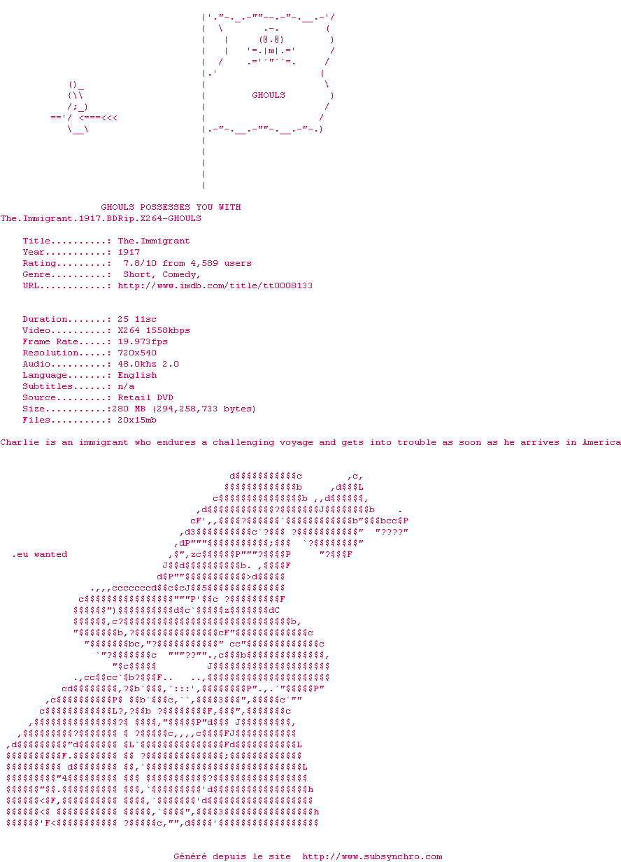 Voir le nfo de la release The.Immigrant.1917.BDRip.x264-GHOULS