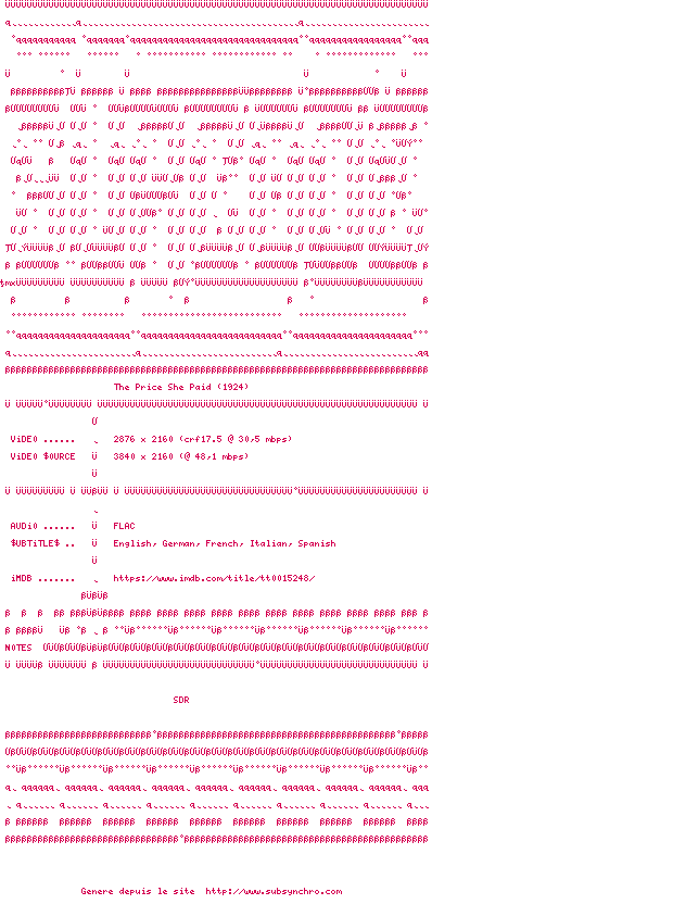 Voir le nfo de la release The.Price.She.Paid.1924.2160p.UHD.BluRay.x265-SURCODE
