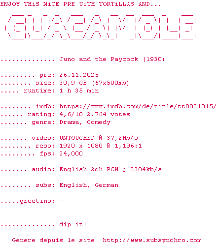 Voir le nfo de la release Juno.And.The.Paycock.1930.COMPLETE.BLURAY-GUACAMOLE