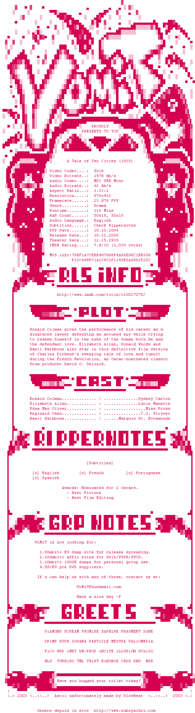 Le fichier A.Tale.Of.Two.Cities.1935.DVDRip.XviD-VoMiT.zip comporte 2 fichiers :