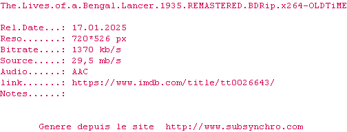 Voir le nfo de la release The.Lives.Of.A.Bengal.Lancer.1935.REMASTERED.BDRip.x264-OLDTiME