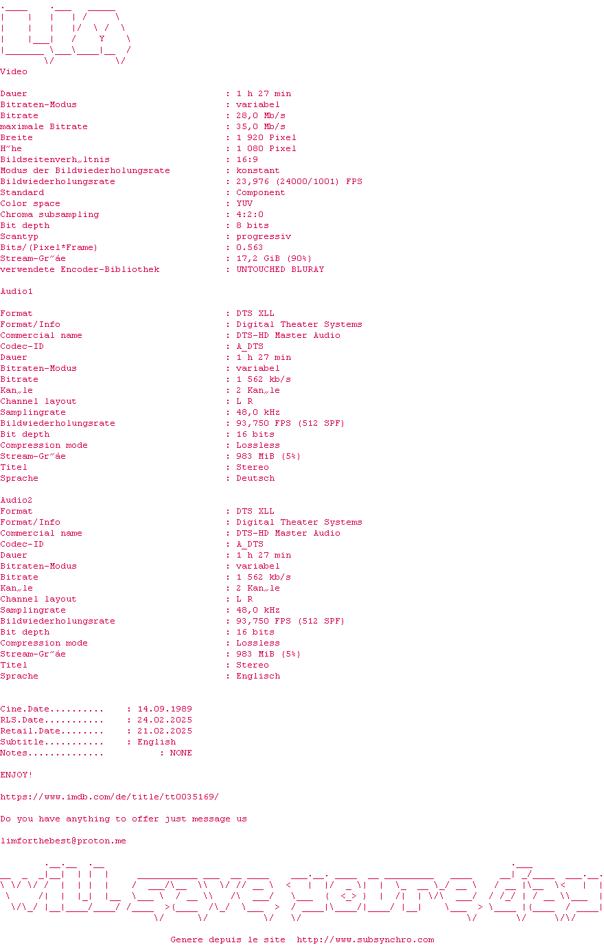 Voir le nfo de la release The.Palm.Beach.Story.1942.MULTi.COMPLETE.BLURAY-LIM