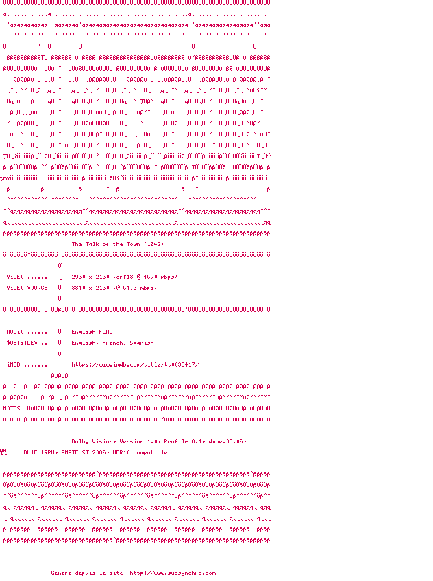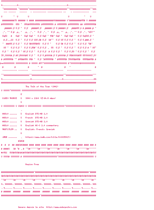 Voir le nfo de la release The.Talk.Of.The.Town.1942.MULTi.2160p.UHD.BluRay.x265-SESKAPiLE