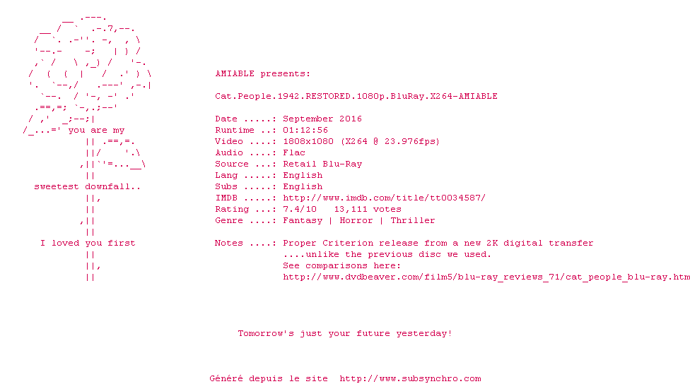 Synchro du sous-titre "cat-people-1942-1080p-bluray-x264-grym-(FANSUB)-bob57"