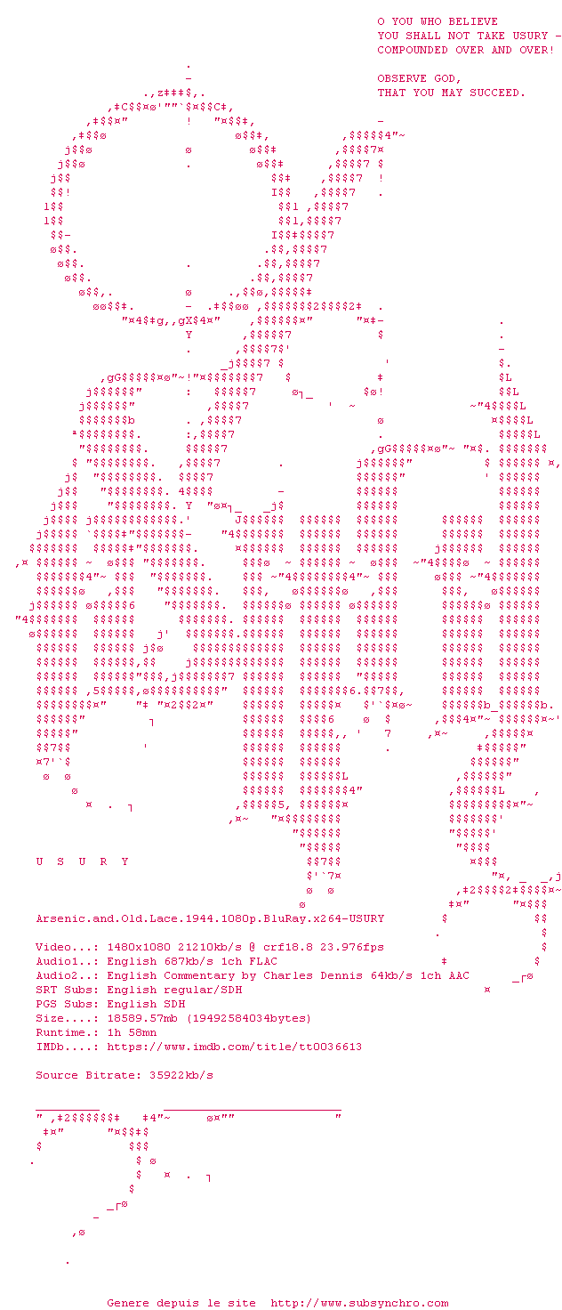 Voir le nfo de la release Arsenic.And.Old.Lace.1944.1080p.BluRay.x264-USURY