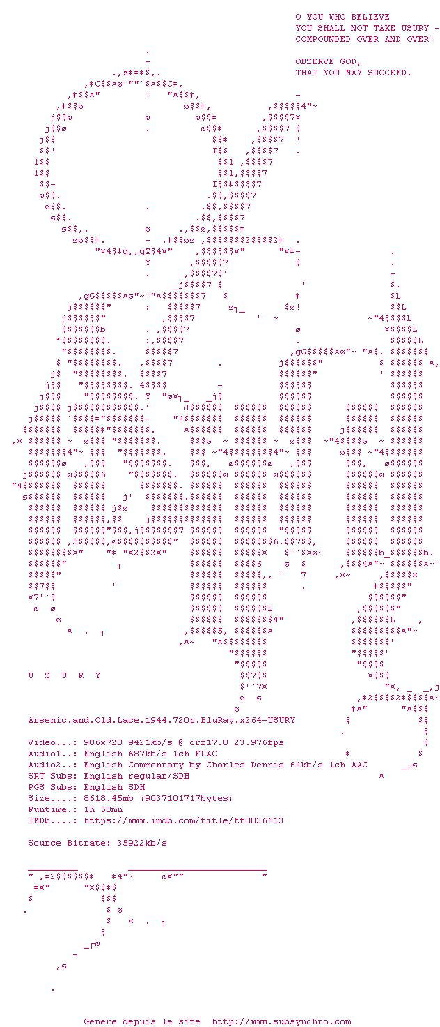 Voir le nfo de la release Arsenic.And.Old.Lace.1944.720p.BluRay.x264-USURY