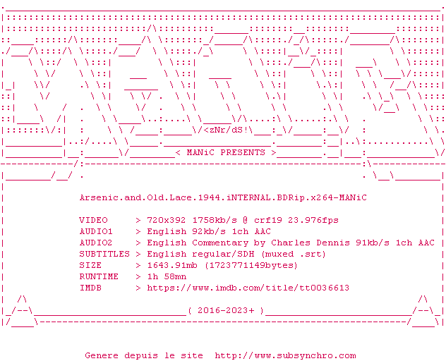 Voir le nfo de la release Arsenic.And.Old.Lace.1944.iNTERNAL.BDRip.x264-MANiC