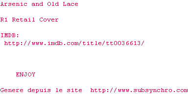 Voir le nfo de la release Arsenic.And.Old.Lace.DVD.Cover-STR
